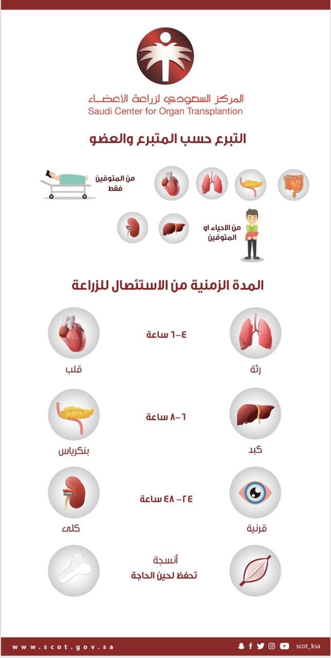المركز السعودي لزراعة الأعضاء On Twitter ماهي الأعضاء والأنسجة التي يمكن التبرع بها من الأحياء والمتوفين دماغيا وكم المدة الزمنية من الاستئصال للزراعة زراعة الأعضاء Https T Co Fkuy9bucfr