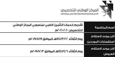 عام المركز الوطني للتخصيص تخصيص قطاع الصحة يسير حسب الخطة الزمنية المعتمدة وكالة الأنباء السعودية