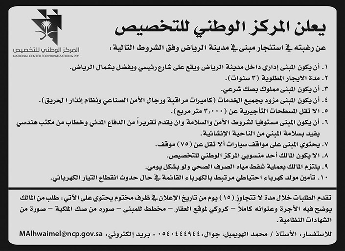 المركز الوطني للتخصيص 85 فرصة جاهزة أمام المستثمرين صحيفة الاقتصادية